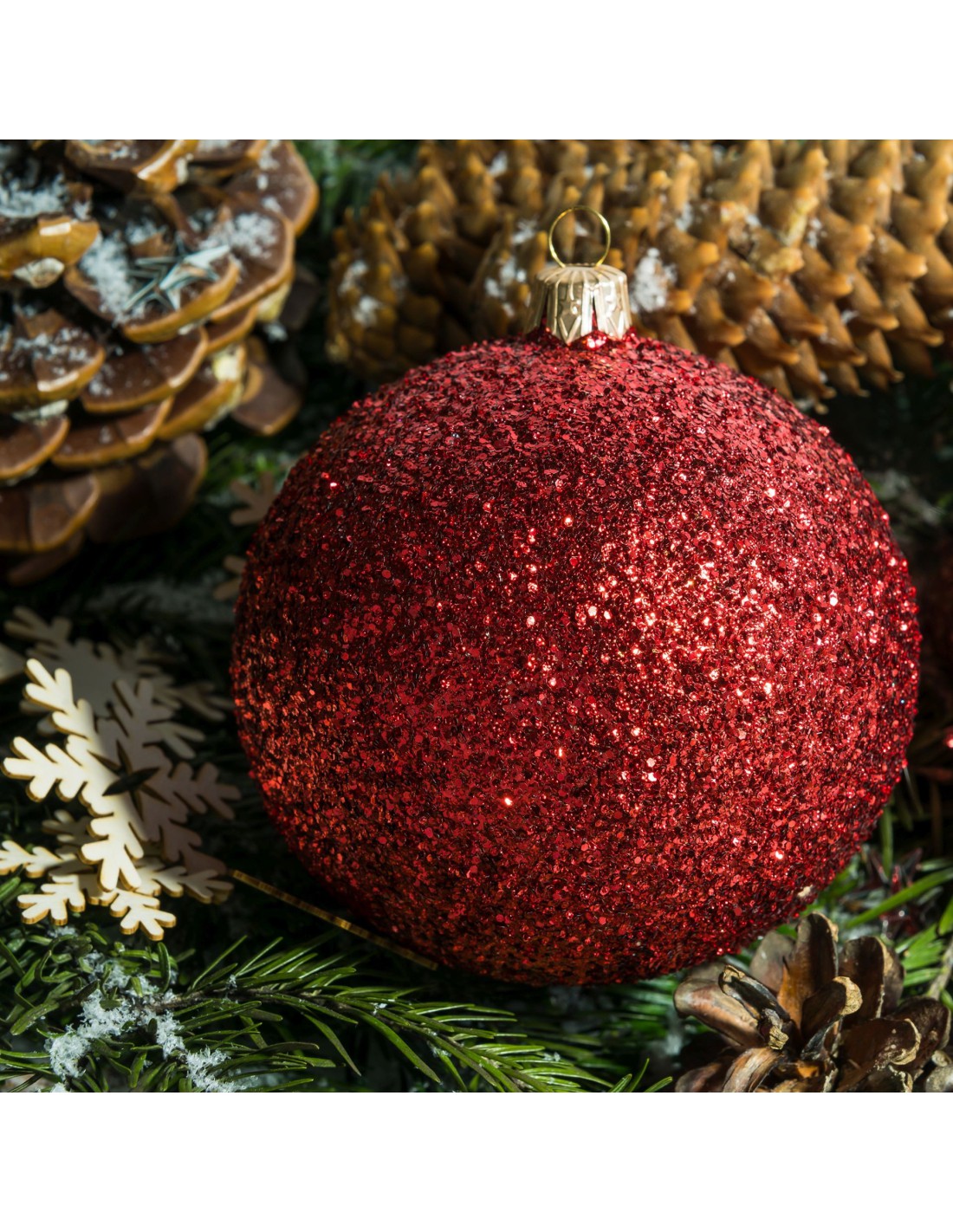 Bombka szklana 10cm , brokat czerwony