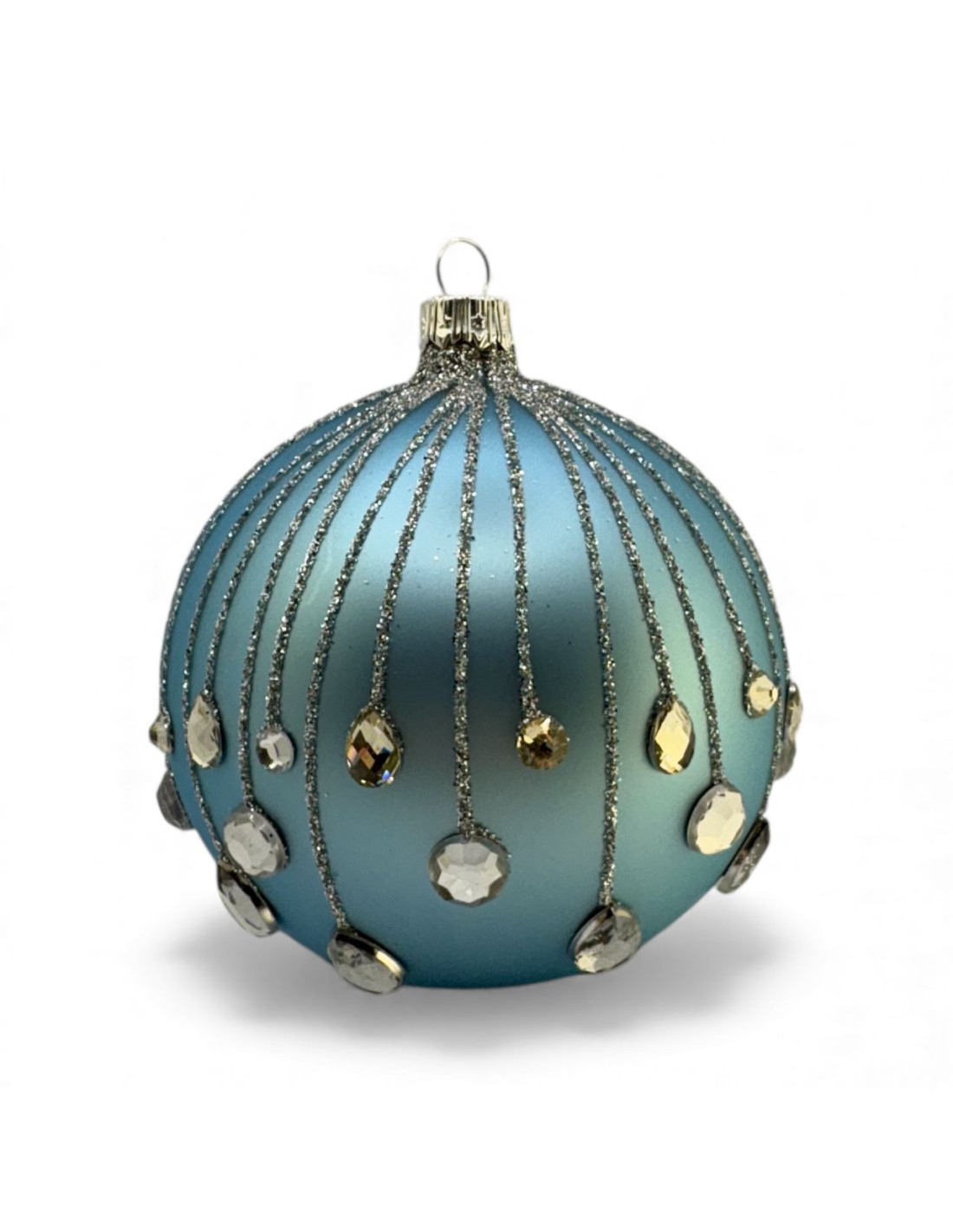 Bombka szklana 10cm,złota spadająca łza na baby blue mat