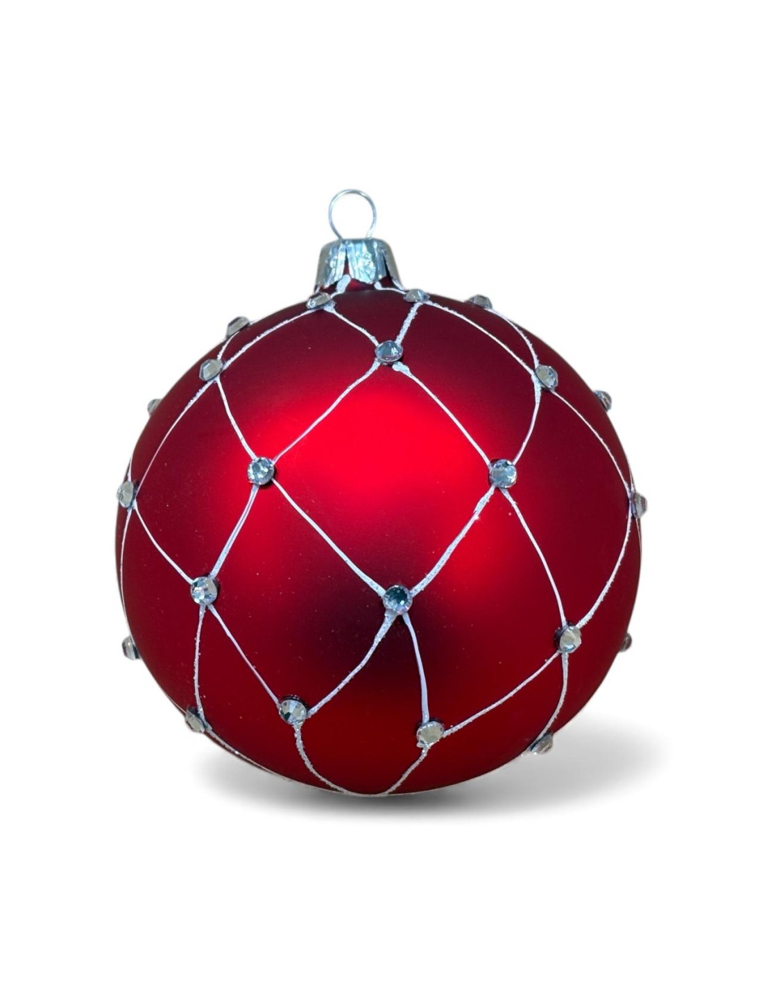 Bombka szklana 10 cm, biała siatka kamień na bordo mat