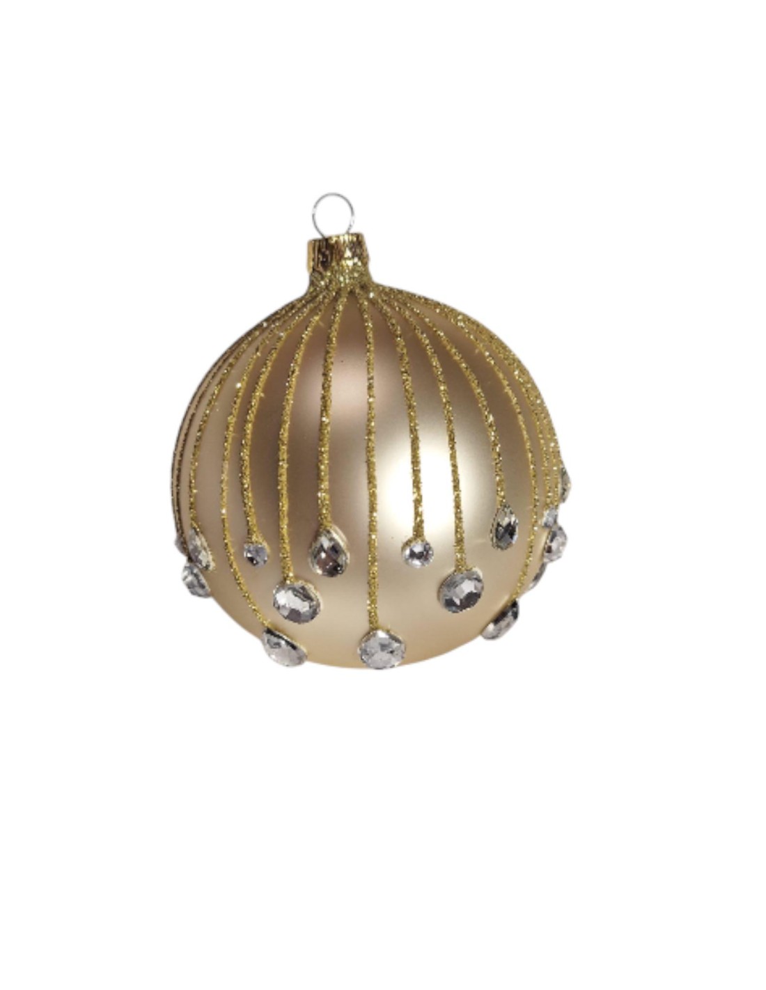Bombka szklana 10cm,złota spadająca łza na szampan mat