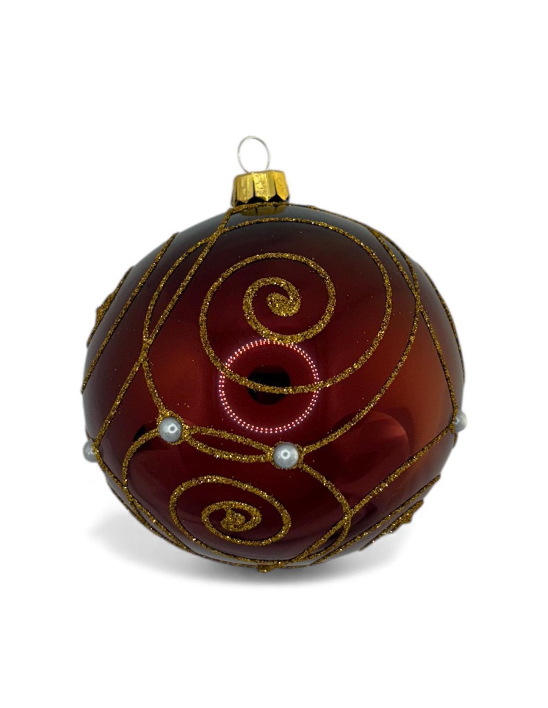 Bombka szklana 10 cm , złoty ślimak na bordo lakier