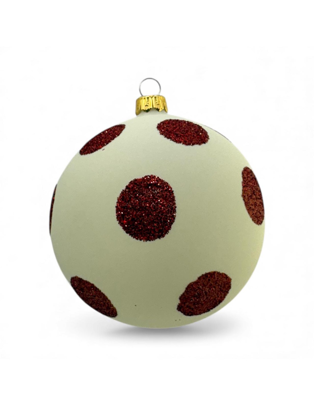 Bombka szklana 10cm, czerwone grochy na biały ( ścianówa) mat