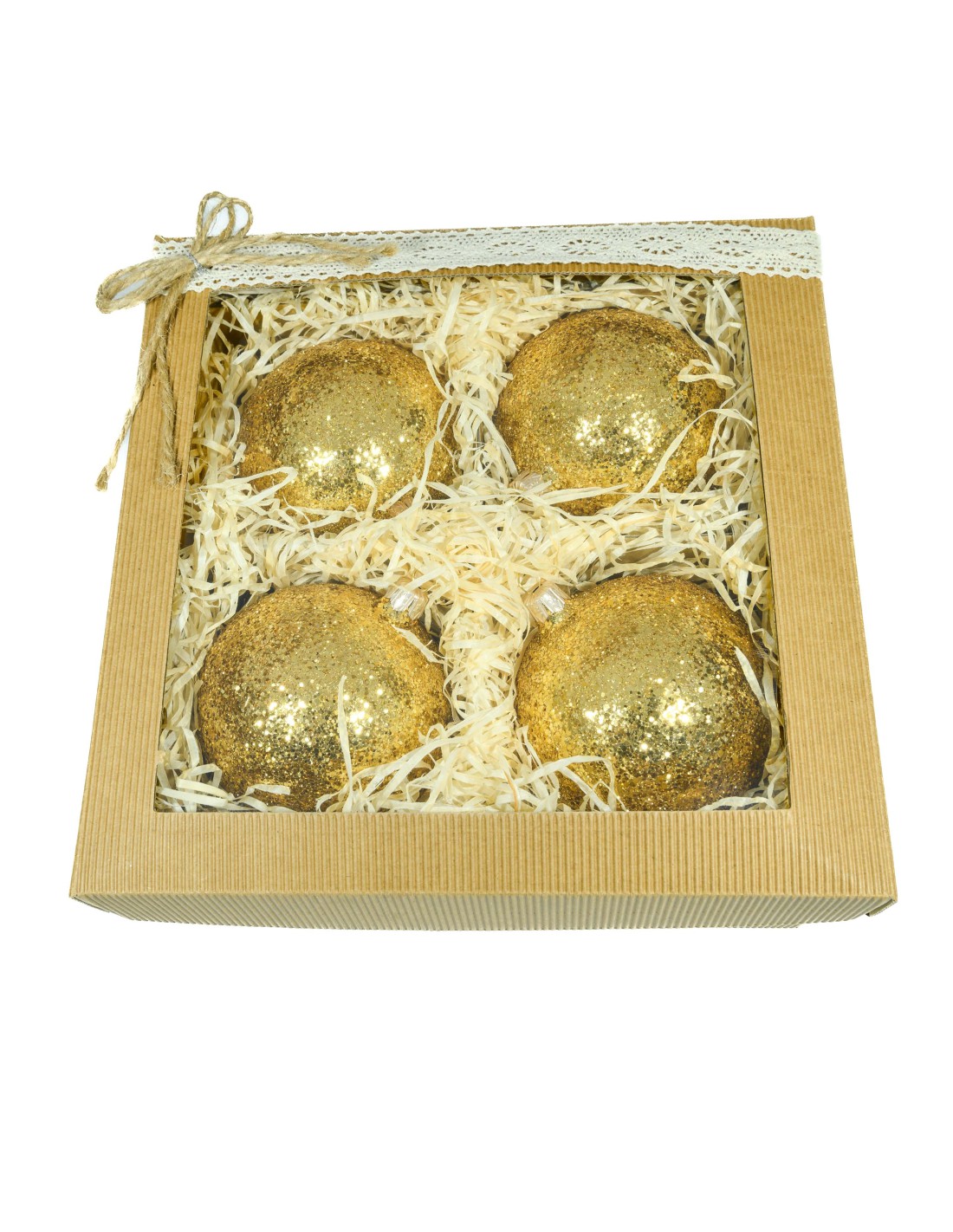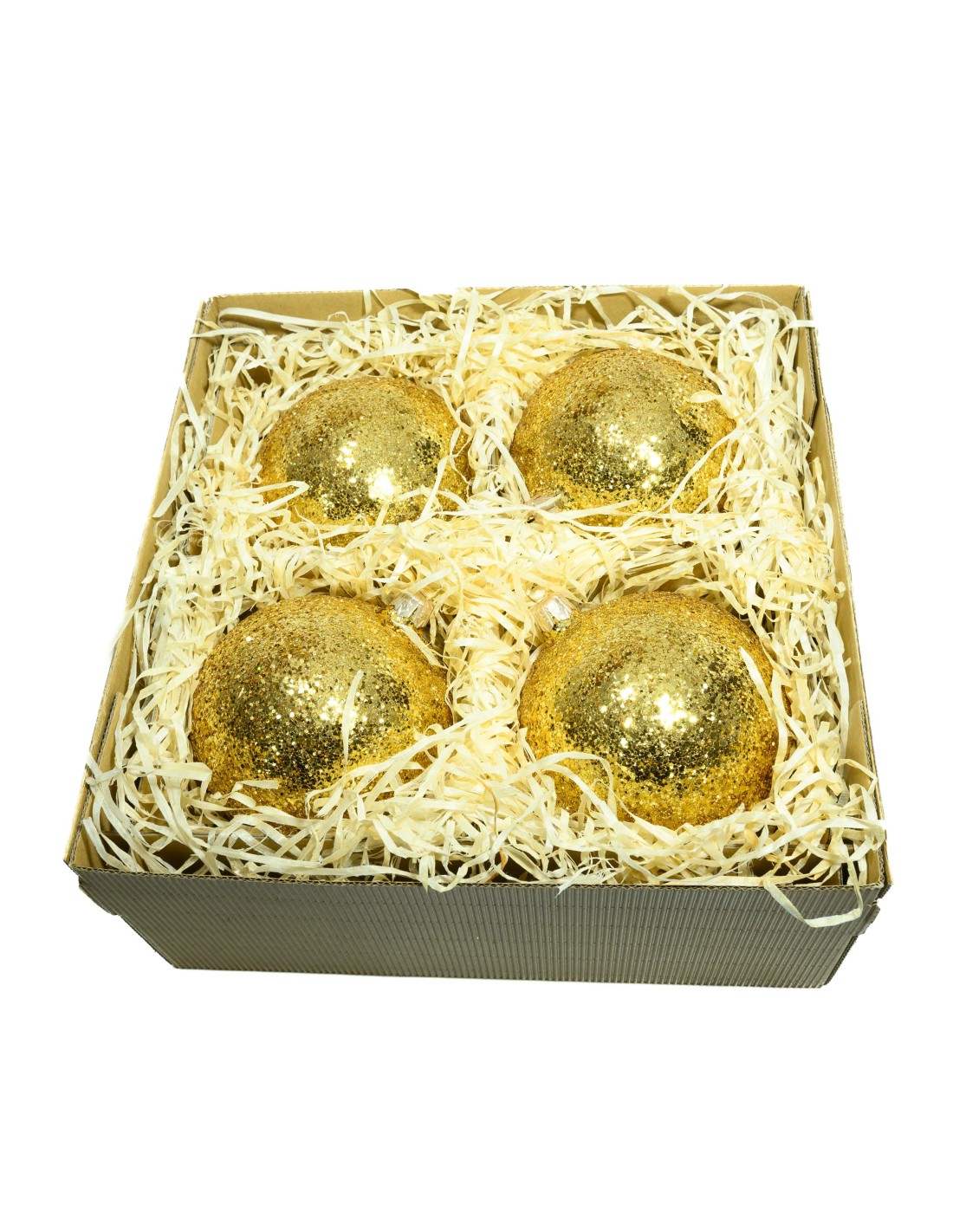 Zestaw prezentowy czterosztukowy - Bombki szklane 10cm, złoty brokat W pudełku 4szt bombek