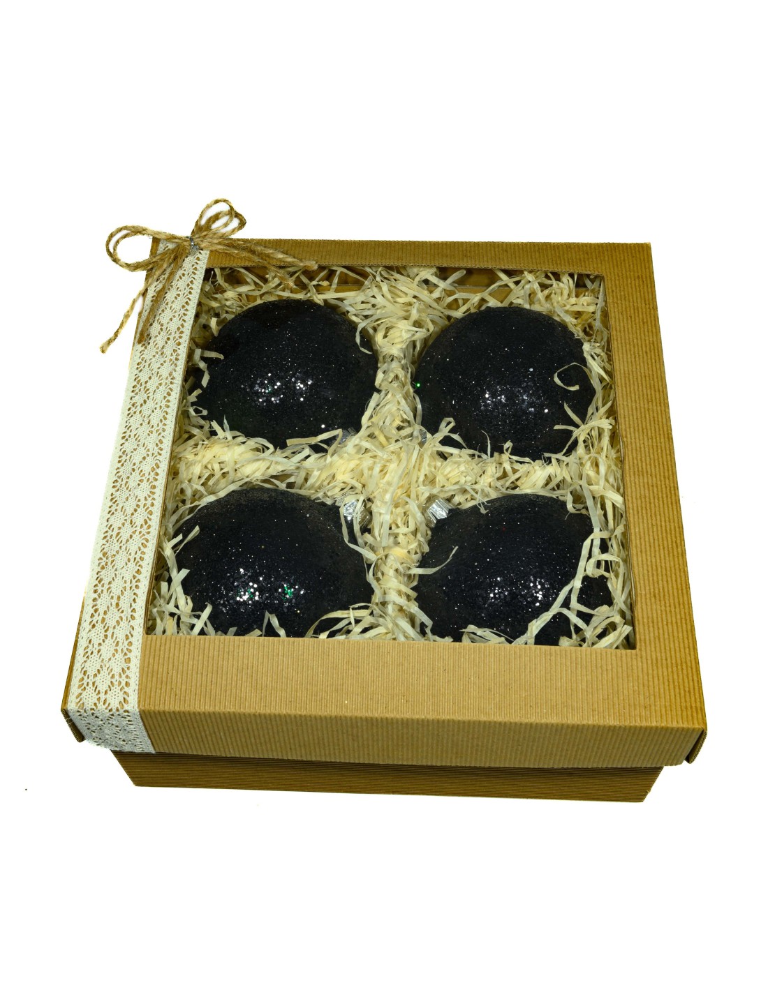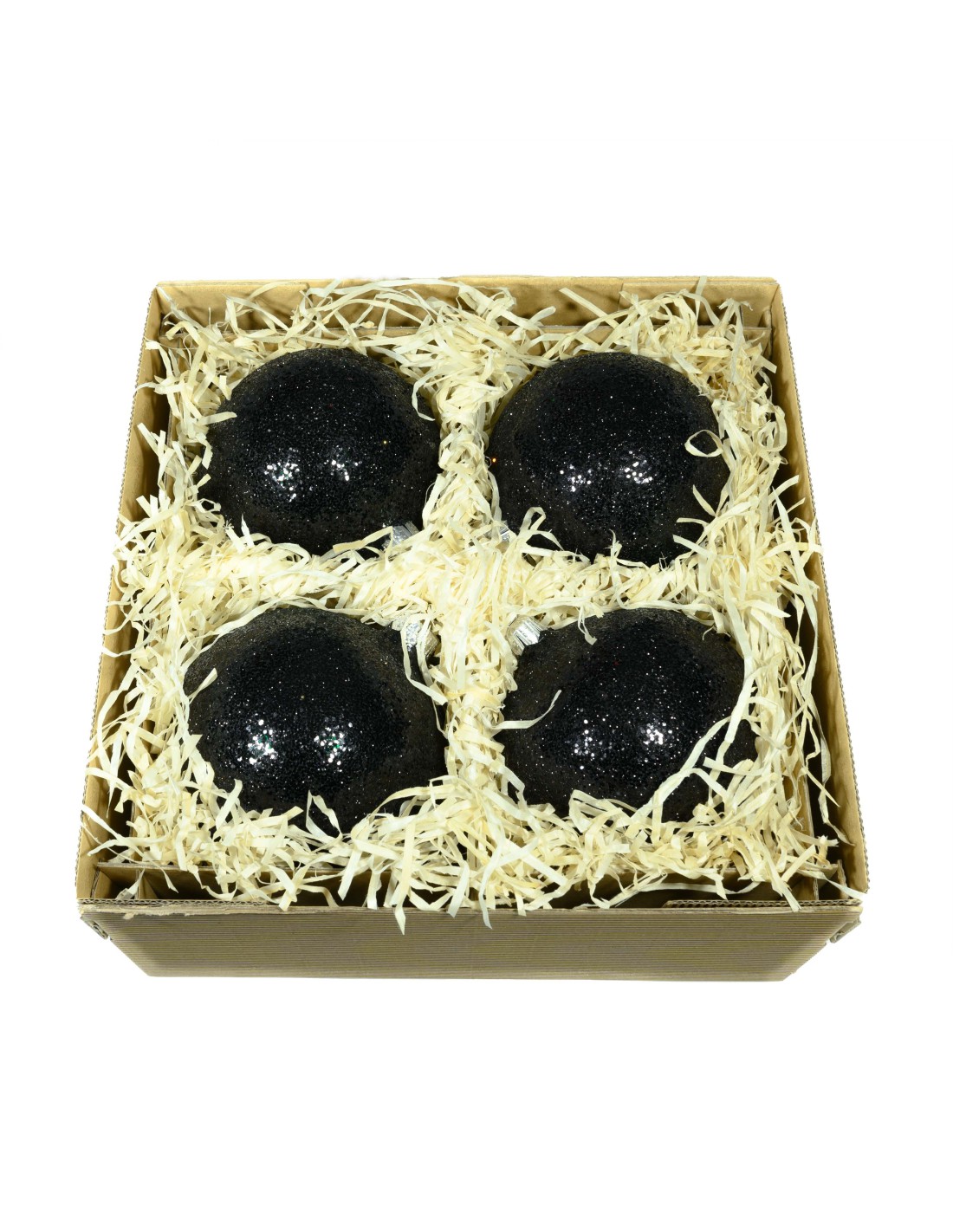 Zestaw prezentowy czterosztukowy - Bombki szklane 10cm, czarny brokat W pudełku 4szt bombek