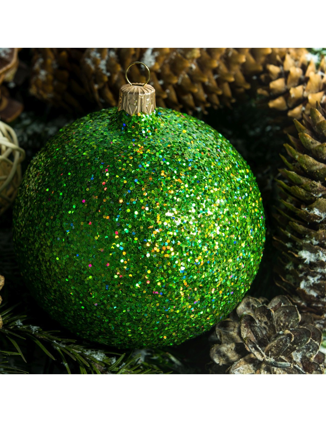 Bombka szklana 10cm , zielony brokat