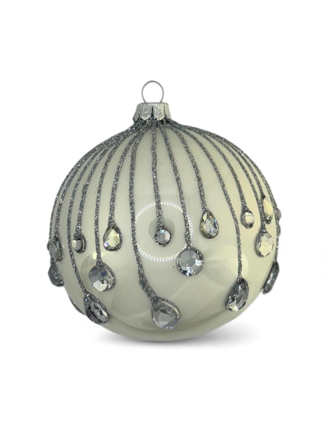 Bombka szklana 10cm, srebrna spadająca łza na biały lakier